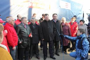 Проводить конвой и пожелать доброго пути сопровождающим прибыли: Заместитель Председателя ЦК КПРФ Владимир Иванович Кашин, Первый секретарь МК КПРФ Николай Иванович Васильев, секретарь МГК КПРФ, депутат Госдумы ФС РФ Владимир Романович Родин, Секретарь Московского Областного комитета КПРФ, депутат Московской Областной Думы Александр Анатольевич Наумов, депутат парламента ЛНР Игорь Гуменюк, активисты районных и городских отделений областного комитета компартии. С напутственным словом выступил заместитель председателя ЦК КПРФ Владимир Иванович Кашин, пожелав счастливого пути водителям и сопровождающим гуманитарный конвой.