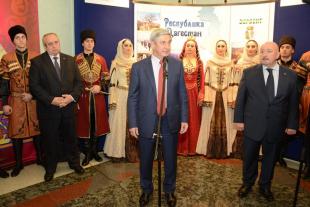Рад приветствовать вас в стенах российского парламента на торжественном открытии Дней Республики Дагестан. На открытии великолепной выставки: «Дагестан многонациональный».