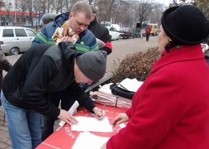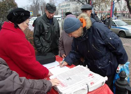 29 октября 2014 года Ульяновский обком КПРФ организовал пикет в поддержку этих требований. В центре города, на улице Гончарова был проведен сбор подписей. Около двухсот ульяновцев смогли не только подписать документ, но и пообщаться с членами ЦК КПРФ - депутатом Государственной Думы Ю. П. Синельщиковым и депутатом Законодательного Собрания Ульяновской области А. Л. Кругликовым, которые приняли участие в пикете. Во время пикета распространялась газета Ульяновского обкома КПРФ «Левый Марш», на страницах которой опубликован текст обращения:
