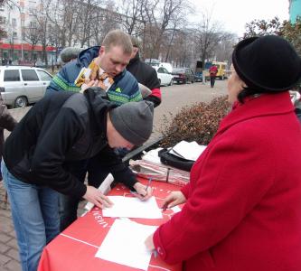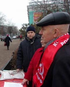 29 октября 2014 года Ульяновский обком КПРФ организовал пикет в поддержку этих требований. В центре города, на улице Гончарова был проведен сбор подписей. Около двухсот ульяновцев смогли не только подписать документ, но и пообщаться с членами ЦК КПРФ - депутатом Государственной Думы Ю. П. Синельщиковым и депутатом Законодательного Собрания Ульяновской области А. Л. Кругликовым, которые приняли участие в пикете. Во время пикета распространялась газета Ульяновского обкома КПРФ «Левый Марш», на страницах которой опубликован текст обращения: