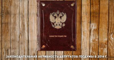 В течение 2014 года депутаты Государственной Думы Федерального Собрания Российской Федерации выступали субъектами законодательной инициативы 4105 раз (под одним законопроектом может подписываться несколько депутатов – авторов данной законодательной инициативы).