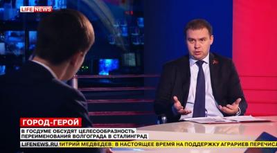 Юрий Афонин напомнил телезрителям, что идея возвратить Городу-Герою на Волге его историческое и всемирно известное имя родилась давно. Ещё в 2011 году коммунистами Сталинградского обкома была проведена объёмная и кропотливая работа. «Тогда, вынеся этот вопрос на народный референдум, наши товарищи собрали более 500 000 подписей, которые высказались в поддержку инициативы», - сообщил секретарь ЦК. Сегодня, по его словам, в Волгограде создана большая рабочая группа по проработке этого вопроса, а также внесены все необходимые документы в Волгоградскую городскую Думу. «Основная форма решения этого вопроса – это волеизъявление народа, точки над «i» расставит референдум, - сказал Афонин. – Но я твердо уверен, что волгоградцы поддержат нас, учитывая статистику голосования по этому вопросу в 2011 году. Я часто бываю в этом городе, встречаюсь с жителями, с молодежными, ветеранскими, общественными организациями. И, поверьте мне, большинство горожан либо горячо поддерживают идею переименования города из Волгограда в Сталинград, либо относятся к ней толерантно. Ярых противников я не встречал. Возможно, есть какая-то группка либералов-антисоветчиков, которым не нравится Советская власть, и которые мажут нашу историю и руководство СССР исключительно черными красками».