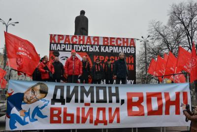 В Москве прошел антилиберальный марш и митинг с требованием отставки либерального правительства Медведева.