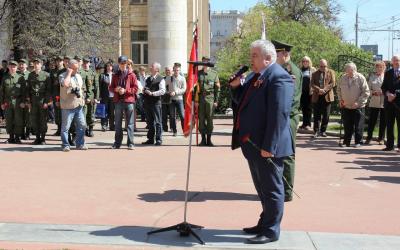 С приближающимся праздником Победы собравшихся поздравил ректор МАДИ В.М. Приходько. Слово также было предоставлено депутату Госдумы, выпускнику вуза Казбеку Куцуковичу Тайсаеву, который от имени КПРФ и ее лидера Геннадия Андреевича Зюганова поздравил всех с наступающим праздником Победы. Перед началом праздничного концерта, первый заместитель Председателя ЦС СКП-КПСС Казбек Тайсаев наградил ветеранов Великой Отечественной войны медалями КПРФ «В ознаменование 70-летия Великой Победы».