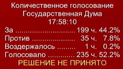 13 мая на пленарном заседании Госдумы рассматривался вопрос парламентского расследования нарушений финансовой дисциплины в Министерстве обороны РФ. За предложение коммунистов проголосовали 199 депутатов (при необходимом минимуме в 226 голосов), против - 35, воздержался - 1.