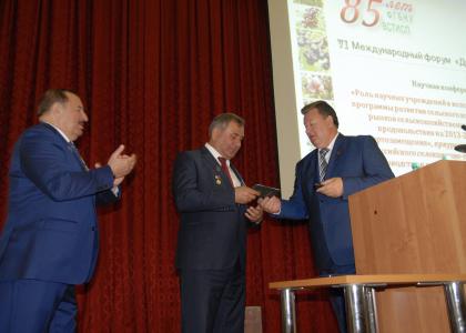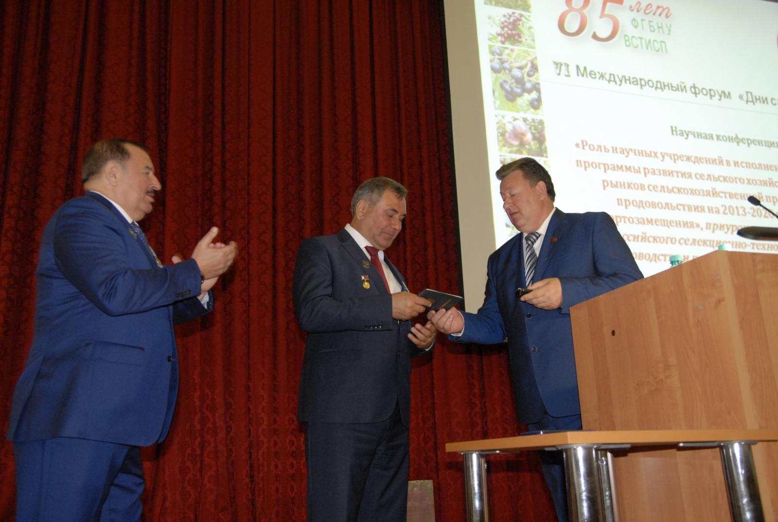 В завершение своего выступления В.И. Кашин торжественно вручил коллективу Института Почетную грамоту Комитета Государственной Думы по природным ресурсам, природопользованию и экологии и Московской областной Думы, а также наградил ряд ветеранов отрасли наградами Государственной Думы Российской Федерации, Московской областной Думы, Минприроды России и неправительственных экологических организаций за многолетний плодотворный труд, профессионализм и заслуги в разработке теоретических основ и эффективных методов селекции, питомниководства; создание исходного материала нового поколения; сортов плодовых и ягодных культур с повышенной продуктивностью и адаптивностью и экологизированных, ресурсосберегающих технологий их производства.