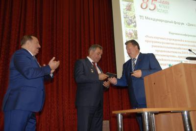 В завершение своего выступления В.И. Кашин торжественно вручил коллективу Института Почетную грамоту Комитета Государственной Думы по природным ресурсам, природопользованию и экологии и Московской областной Думы, а также наградил ряд ветеранов отрасли наградами Государственной Думы Российской Федерации, Московской областной Думы, Минприроды России и неправительственных экологических организаций за многолетний плодотворный труд, профессионализм и заслуги в разработке теоретических основ и эффективных методов селекции, питомниководства; создание исходного материала нового поколения; сортов плодовых и ягодных культур с повышенной продуктивностью и адаптивностью и экологизированных, ресурсосберегающих технологий их производства.
