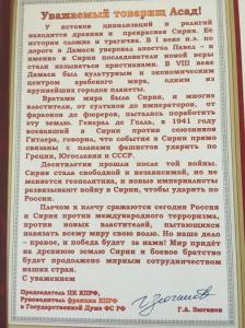 Г.А. Зюганова. Этот документ произвел огромное впечатление на сирийскую