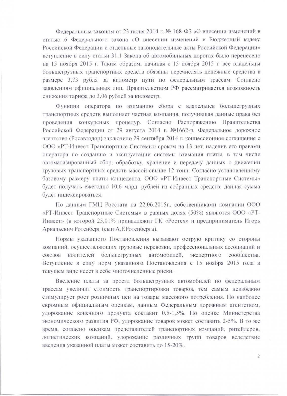 сбора платежей с большегрузов – в которую она вложила почти 30 млрд. руб.