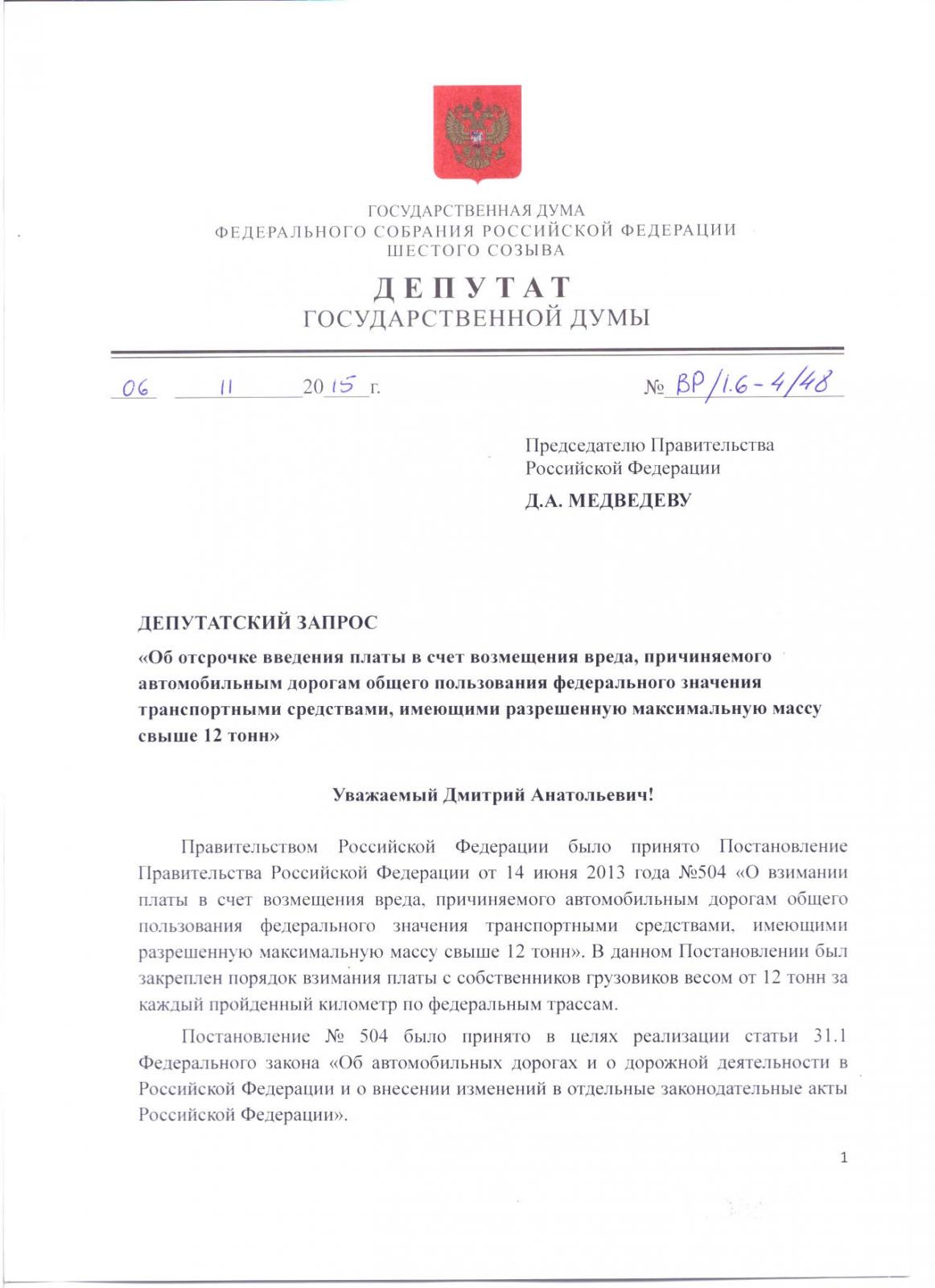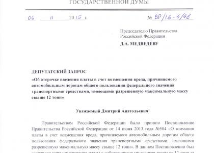 запрос был направлен Председателю Правительства РФ Д.А. Медведеву. Также ими был