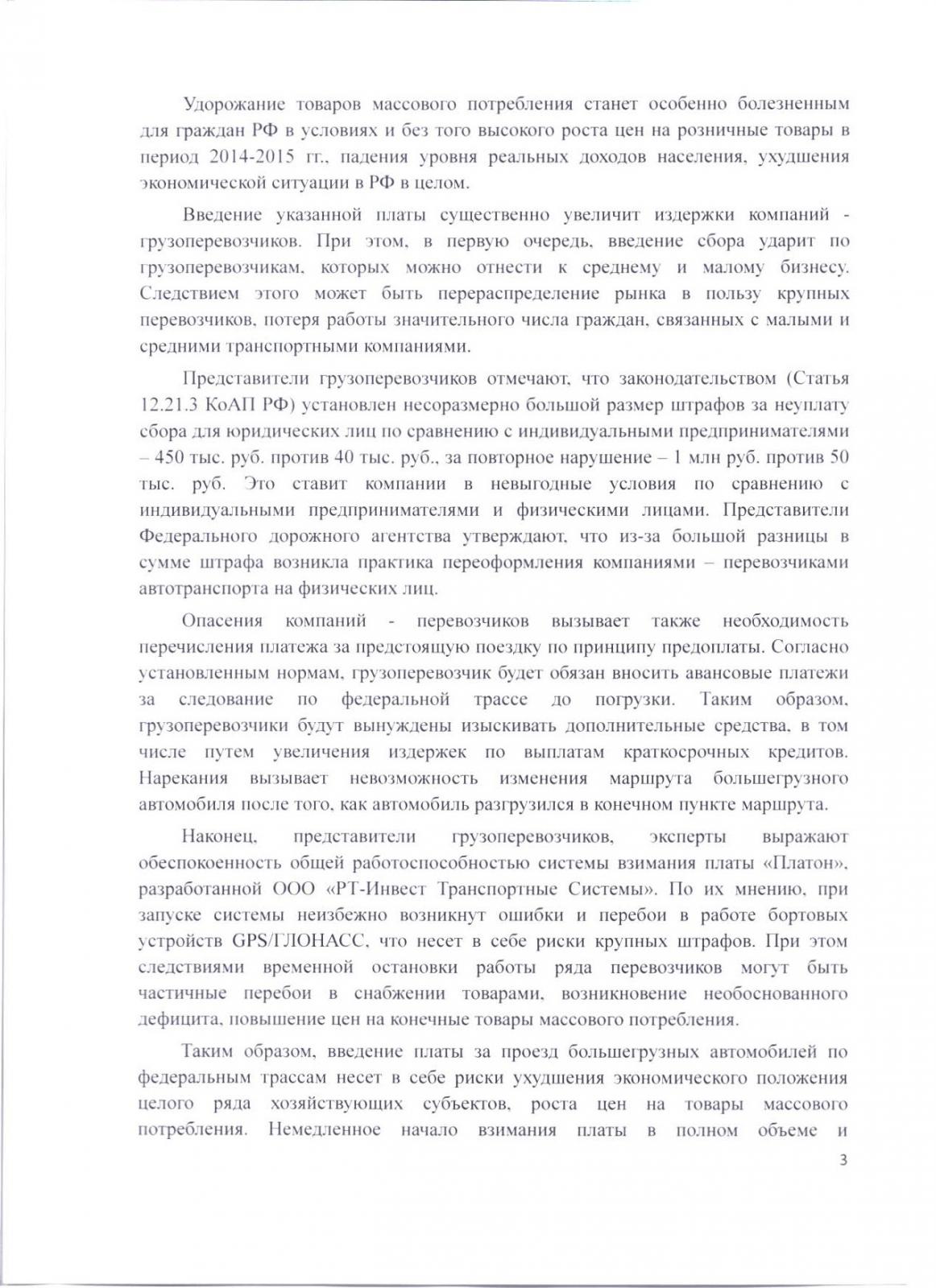 указанной платы увеличит издержки компаний - грузоперевозчиков. При этом, в