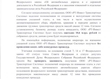 Генеральному прокурору РФ направлен запрос о проверке законности наделения