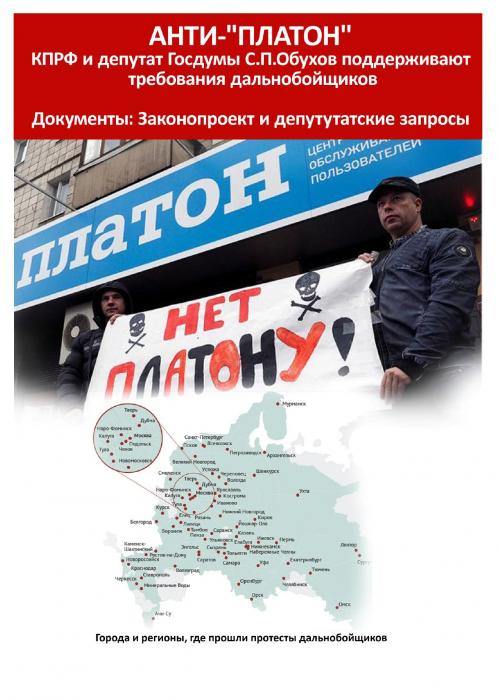 В брошюре публикуется заявление Г.А.Зюганова, депутатские запросы С.П.Обухова и соответствующий законопроект, внеснный депутатами-коммунистами для отсрочки введения "Платона".