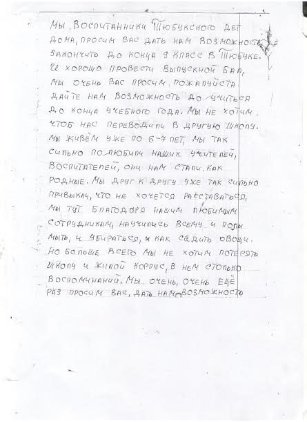 инстанции, и направляю обращение от детей и сотрудников Тюбукской специальной