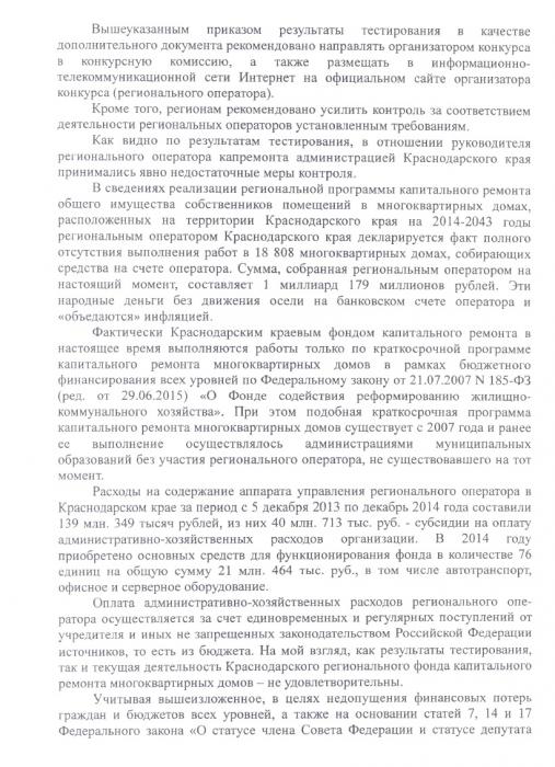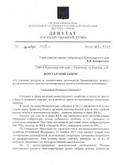 запрос главе администрации (губернатору) Краснодарского края В.И. Кондратьеву
