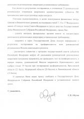 принятых решениях прошу проинформировать Государственную Думу ФС РФ.