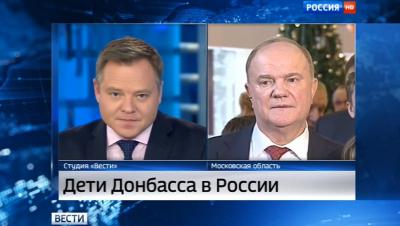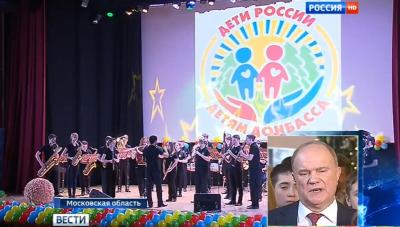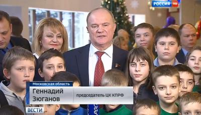 ГЕННАДИЙ ЗЮГАНОВ (ПРЕДСЕДАТЕЛЬ ЦК КПРФ): Да, мы здесь принимаем большую группу детей Донбасса. Это уже 10-я... 10-й отряд, 1100 человек отдохнули в этом прекрасном удивительном месте Подмосковья. И у них была великолепная новогодняя программа. Посетили Кремль, были в храме Христа Спасителя. Посетили Выставку достижений народного хозяйства, цирк и многое другое. Дети провели соревнования. Я считаю, что счастье детей - это и наше настоящее счастье. Мы очень беспокоимся за то, чтобы дети жили в мире и согласии. Иосиф Давыдович Кобзон вместе с нами приветствовал детей. Он был инициатором создания движения "Дети России - дети Донбасса". И мы вместе с ним обращаемся ко всем деловым людям поддержать нашу инициативу. В этом году планируем принять еще 1500 детей.