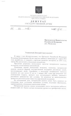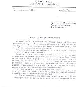 РИА Новости. Зампред комитета Госдумы по конституционному законодательству и госстроительству Вадим Соловьев (КПРФ) направил запрос премьер-министру РФ Дмитрию Медведеву, в котором предлагает разрешить использовать средства материнского капитала на покупку отечественных автомобилей.