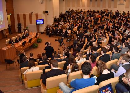 В своей лекции Жорес Иванович подробно рассказал о научных основах развития ядерной физики, заложенных учеными начала XX века, об основных направлениях исследований в данной области в предвоенный период. Затем Ж.И. Алферов рассмотрел важнейшие этапы в развитии советского и американского атомных проектов, возникновение которых во многом было предопределено угрозой создания ядерного оружия в фашистской Германии.