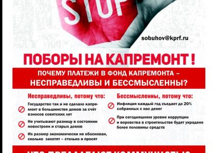 поэтому КПРФ будет добиваться полной отмены поборов на капитальный ремонт.