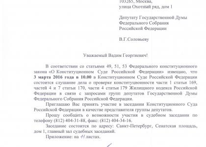 03 марта 2016 года в Конституционном суде Российской Федерации состоится слушание дела о проверке конституционности части 1 статьи 169, частей 4 и 7 статьи 170, части 4 статьи 179 Жилищного кодекса Российской Федерации (о соответствии Конституции установленного порядка формирования фонда капитального ремонта) в связи с запросом группы депутатов Государственной Думы Федерального Собрания Российской Федерации.