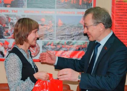 Накануне весеннего женского праздника в Забайкальском крайкоме КПРФ состоялась встреча депутата Государственной Думы В.Г. Позднякова с журналистами ведущих СМИ региона, пресс-секретарями нескольких ведомств и представителями общественности. Владимир Поздняков поздравил представительниц прекрасной половины человечества с наступающим праздником.