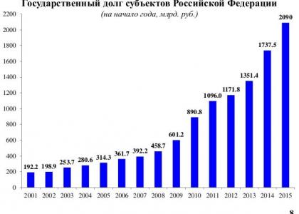 - рост государственного долга субъектов РФ (на 2015 – более 2 триллионов рублей)