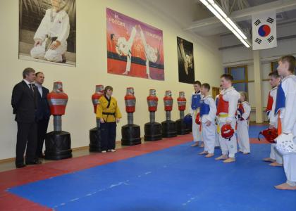 пообщался с тренерами, спортсменами, посмотрел на тренировки юных тхэквондистов