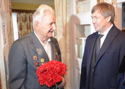 Алексей Русских расспросил фронтовика о событиях военных лет, семье, здоровье.