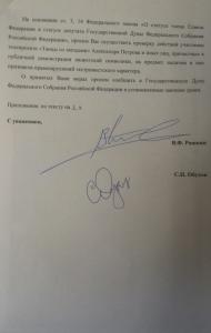 принятых Вами мерах просим сообщить в Государственную Думу Федерального