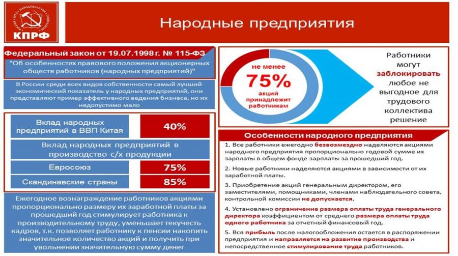 предпочтение народным предприятиям. Именно они являются сегодня образцовыми.