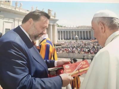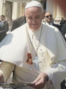 В подарок понтифику депутат-коммунист преподнёс Георгиевскую ленточку,
