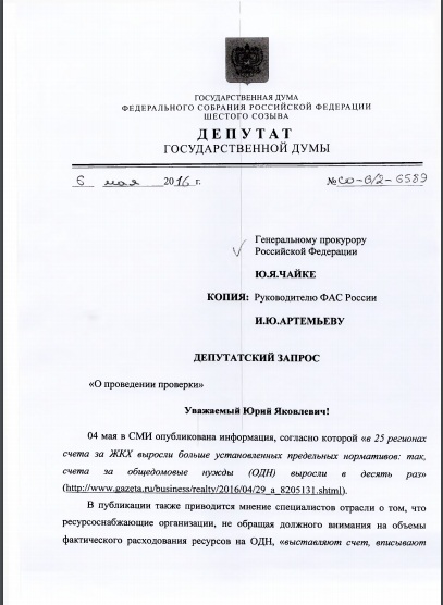 Депутаты Госдумы от КПРФ Валерий Рашкин и Сергей Обухов обратились в Генпрокуратуру и Федеральную антимонопольную службу (ФАС) с просьбой проверить, почему в ряде регионов России рост тарифов ЖКХ превысил установленные нормативы.