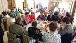 Празднично одетые и в отличном настроении виновники торжества за чайным столом с удовольствием выслушали приветствие федерального депутата-коммуниста В.И. Гончарова.