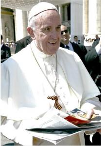 Как сообщали российские СМИ, депутат ГД РФ, секретарь ЦК КПРФ Павел Дорохин поздравил папу Римского Франциска с Днем Победы и подарил понтифику георгиевскую ленточку накануне нашего Великого Праздника 5 мая 2016 г.
