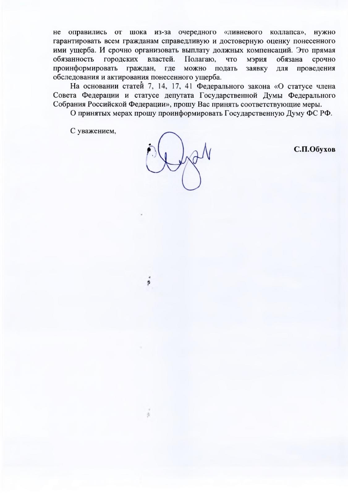 С.П. Обухов в связи со сложившейся ситуацией направил