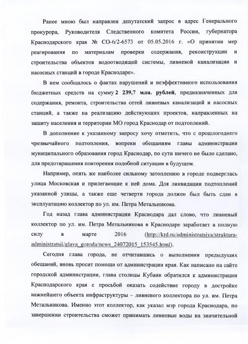 Ранее мною был направлен депутатский запрос в адрес Генерального