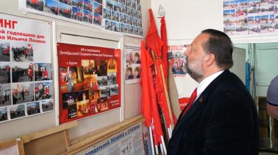 с наглядной агитацией Курганского обкома КПРФ, которую признал очень эффектной,