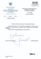наше обращение из администрации президента направлено правительству для