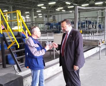 встретился с коллективом и директором предприятия Еленой Острягиной. Стекольный