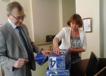 Книги серии «Жизнь Замечательных Людей» для краевой библиотеки им. Пушкина прибыли в Читу почтовыми посылками, которые депутат привёз в библиотеку и лично вручил адресату.
