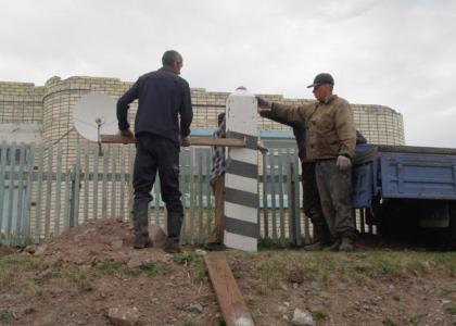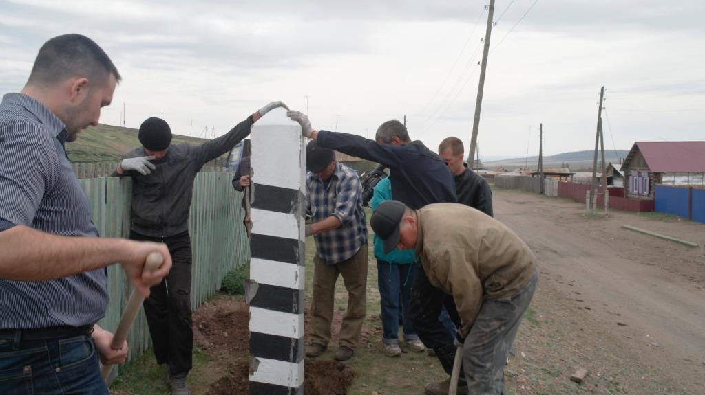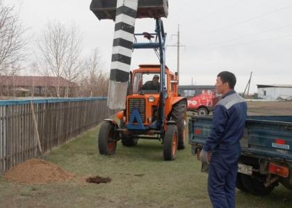 На фото: рабочие моменты установки «верстовых столбов» в с. Домно-Ключи и с. Беклемишево Читинского района Забайкальского края, 19 мая 2016 года.