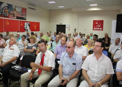 В среду, 27 июля, в актовом зале Крымского республиканского отделения КПРФ состоялась встреча первых секретарей городских и районных отделений КПРФ с адмиралом, Командующим Черноморским флотом с 1998 по 2002 гг., Председателем Комитета по обороне Государственной Думы Российской Федерации Владимиром Петровичем Комоедовым.