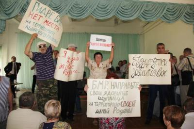 Зал взорвался криками. Вверх взметнулись десятки транспарантов: «Мы против добычи и транспортировки марганцевой руды на нашей земле!», «Нам не нужно поколение идиотов!», «Спасём Ашинку для потомков!», «Соседи, оставьте ядовитые отходы себе!»