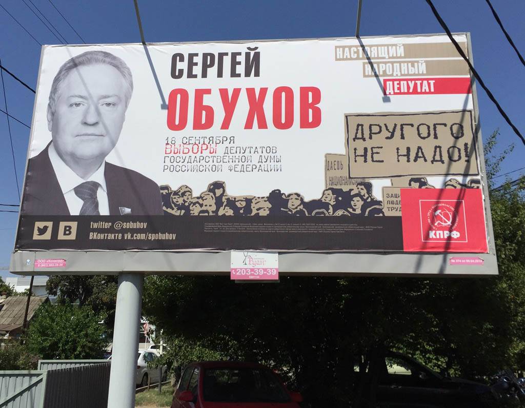 Однако агитация за КПРФ и Сергея Павловича не заканчивается только лишь раздачей листовок, работа идет по всем фронтам, в том числе и в интернете. А со вчерашнего дня улицы нашего Краснодара украсили агитационные баннеры, призывающие голосовать за нашу партию и нашего кандидата. Мы искренне убеждены, что только программа КПРФ поможет стране выйти из кризиса, а представлять краснодарцев в Государственной Думе должен народный депутат, действительно близкий к людям – Сергей Павлович Обухов, который своим примером доказал, что проблемы и заботы жителей Краснодара – это его проблемы и заботы!