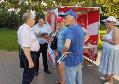 В центре города были установлены переносные агитационные конструкции, так называемые «агитационные кубы», с символикой партии и образом нашего кандидата. А партийный актив Краснодарского городского отделения КПРФ и ЛКСМ РФ агитировал проходящих краснодарцев прийти на выборы 18 сентября и проголосовать за будущее страны в лице КПРФ и ее кандидатов.