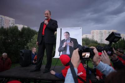 своему избирателю. Вместо него на сцене, организованной КПРФ, красовался