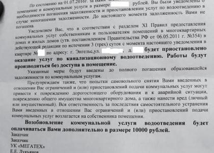 дошли до того, что присылают должникам письма с угрозой отключить канализацию с