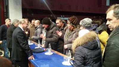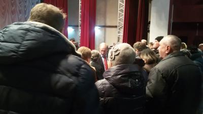 Разговор состоялся в Доме Культуры города Гуково, где присутствовали горняки и представители от Правительства Ростовской области. Прокуратура направила на встречу заместителя начальника управления Генеральной прокуратуры РФ в Южном федеральном округе Евгению Победоносцева и первого заместителя прокурора Ростовской области Адрей Сысоенков.