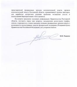 Рашкин обратился к Вайно и Устинову с предложением организовать совместное совещание, на котором можно было бы выяснить логику действий правительства Ростовской области, а также узнать позицию федеральных органов о возможности погашения долгов по зарплате из Резервного фонда.